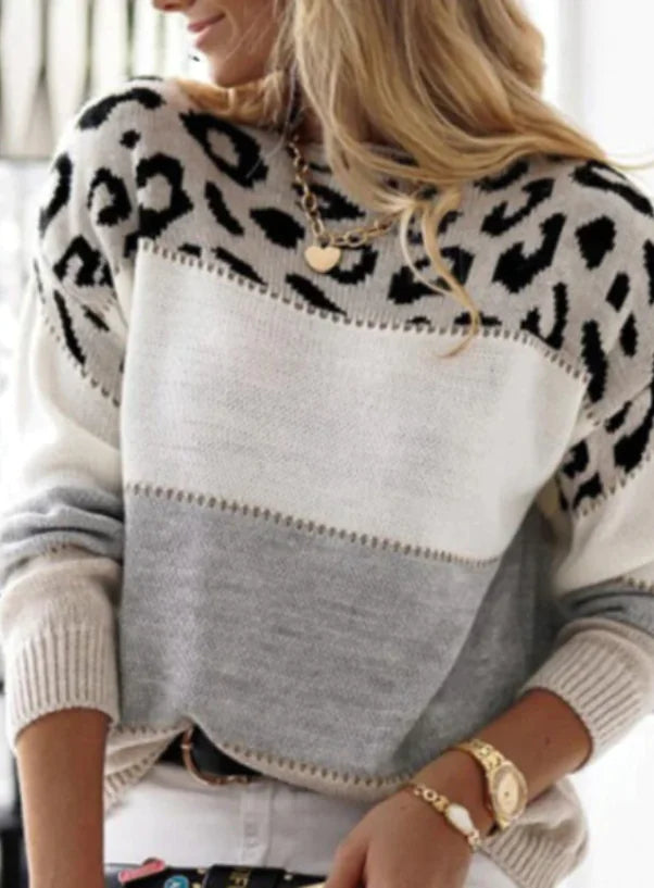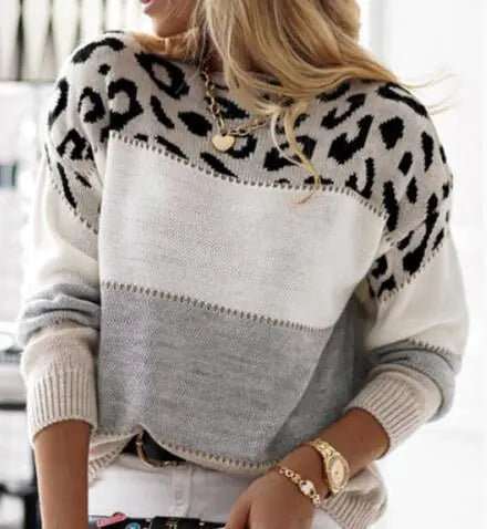 Embrace your style with this stunning Leopard Pattern Color Matching Round Neck Casual Sweater. Perfect for any casual occasion, this versatile piece combines comfort and fashion in a unique way.