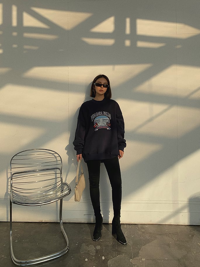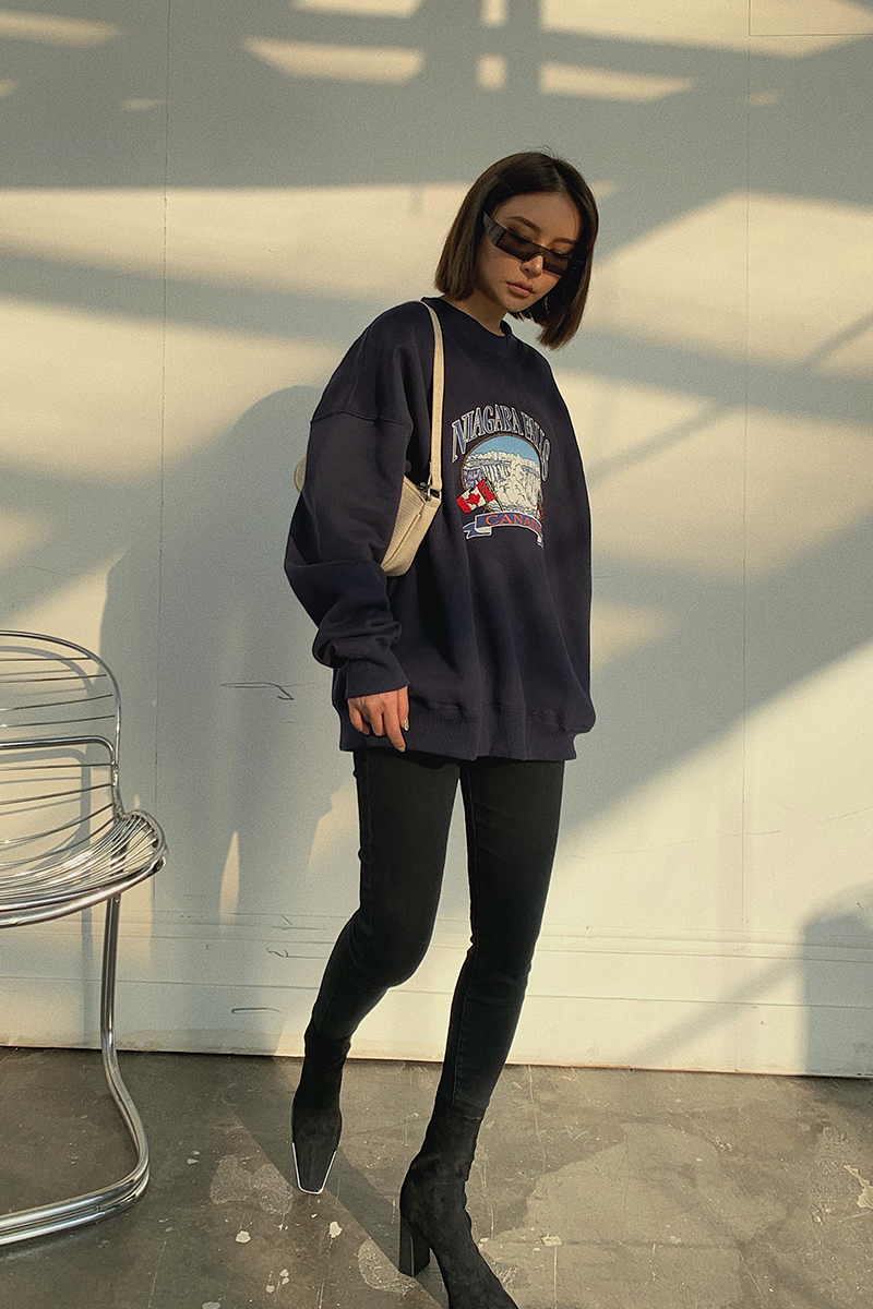 With its round neck and long sleeves, this piece offers a relaxed fit that flatters every body type. The loose design not only enhances comfort but also makes it an ideal choice for layering during the cooler months. Available in a chic navy blue color, this sweater embodies a trendy street style that resonates with the vibe of Europe and America.
